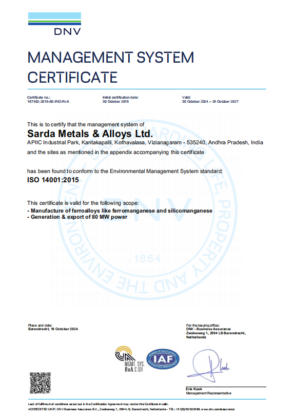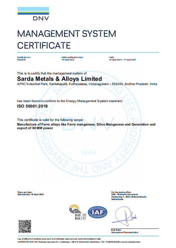 We are thrilled to announce that Sarda Metals & Alloys Ltd. has been awarded the prestigious ISO 50001:2018 Energy Management system certification. This achievement reflects our commitment to energy efficiency, sustainability & continuous improvement.