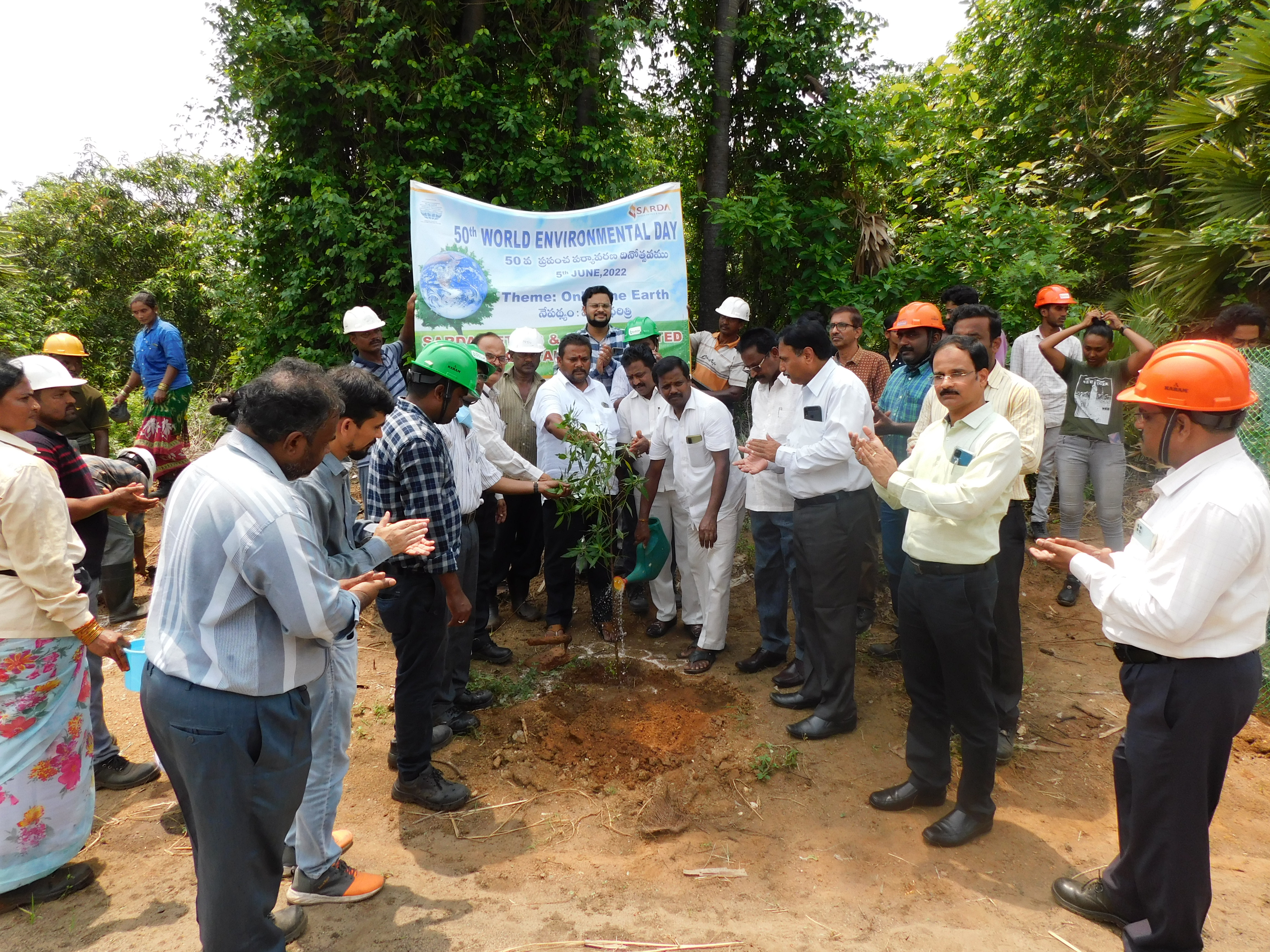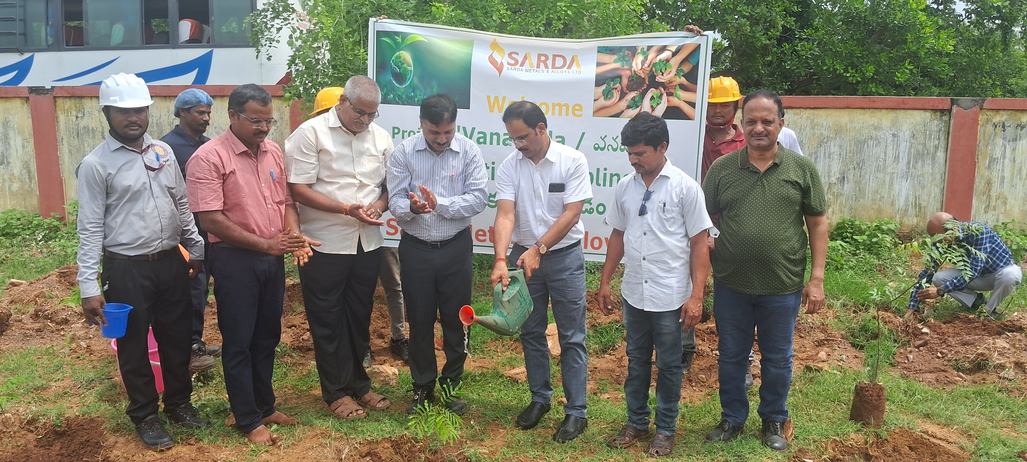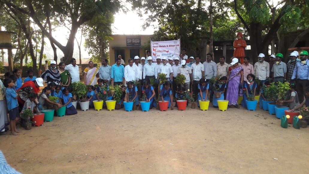 Sarda Metals & Alloys Ltd. has conducted mega tree plantation program on the occasion of world environment day. Organization's Sr.GM-HR Mr.Prabhat Mohan addressed locals of kantakapalli the importance of planting trees and called everyone to participate in this event. Around 320 saplings were planted. Other HOD's of the organization MR.Anath Kumar, Mr.Satrughan Singh, Mr.Vijaya Bhaskar, Mr.Sanyasi Rao & School Principal Mr.M Ramana participated in this event.