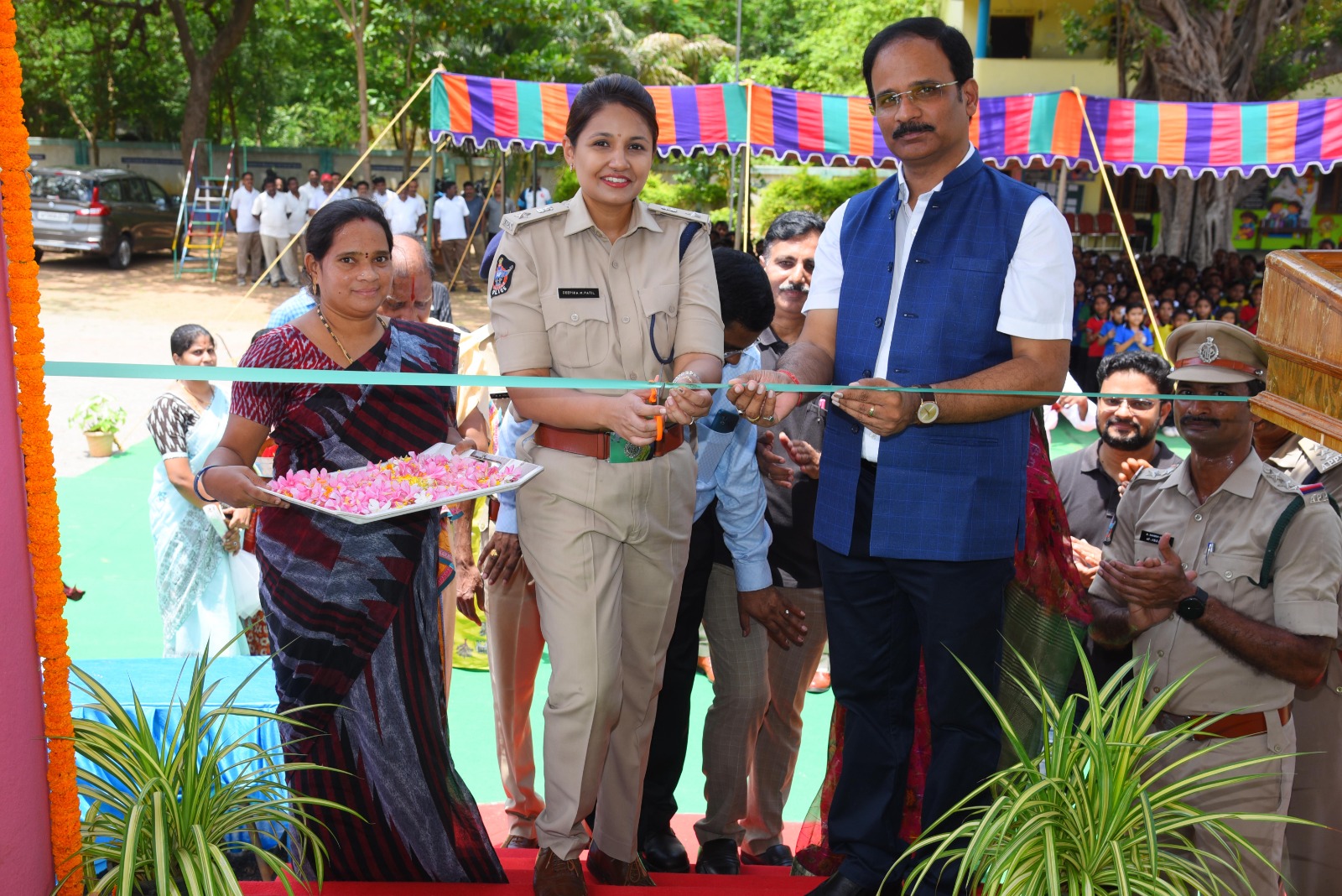 Sarda Metals and Alloys Ltd constructed Sarda Kala Vedika at Police Welfare English Medium School at Vizianagaram under CSR for developing children in all cultural activities. Smt. M.Deepika-Superintendent of Police, Vizianagaram inaugurated Sarda Kala Vedika and addressed the children to utilize the stage and develop the skills from student stage. Mr. M.M.Solomon (Additional SP) and Sri. Universe (DSP) also participated in the Inauguration ceremony. Mr.Prabhat Mohan (Sr.GM HR) said that we are focussing on CSR activities towards children education as they are future of nation. Mr. Vijay Bhaskar (Sr.GM Civil), Mr.H.Sanyasi Rao (DGM HR) and others participated in this program.
