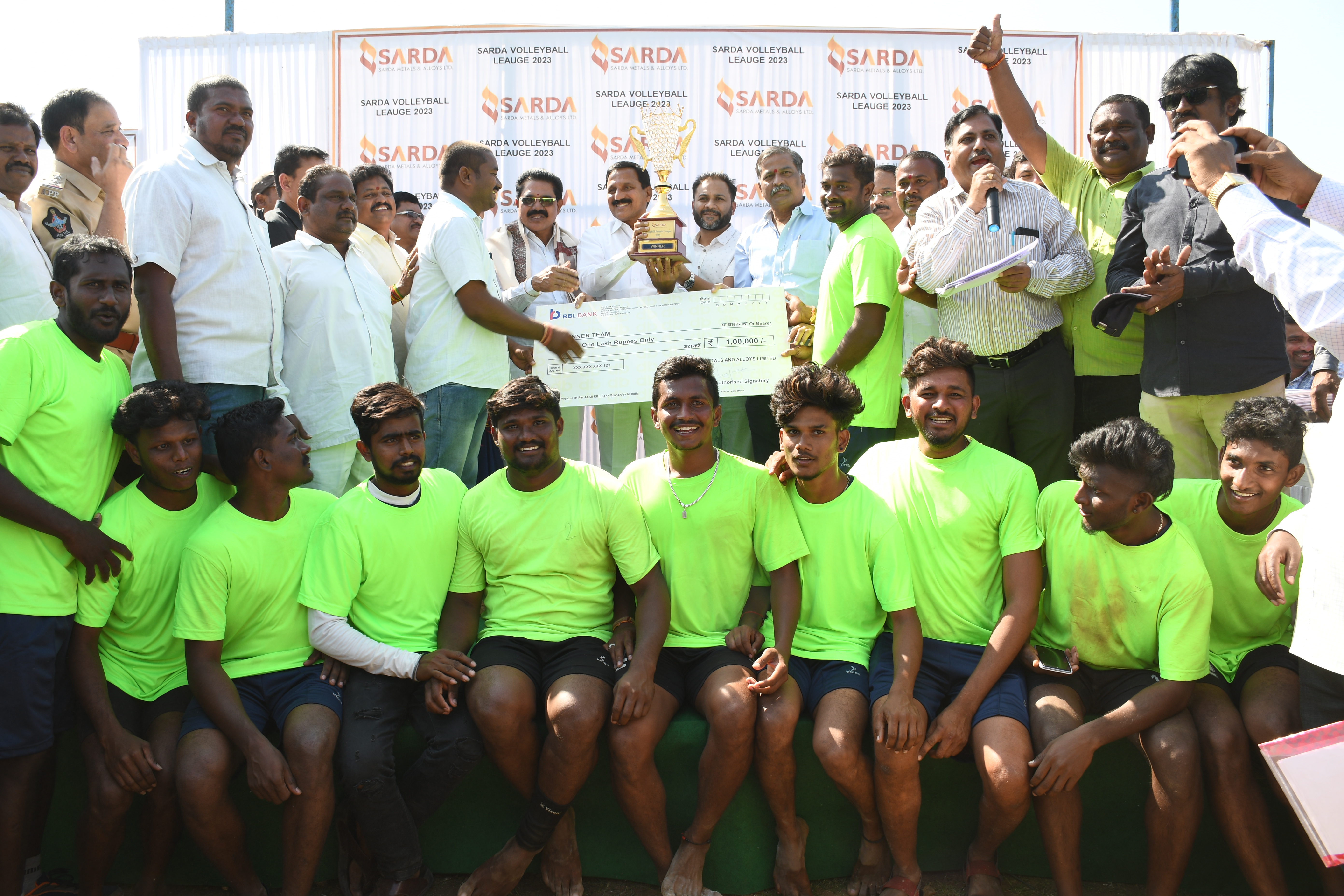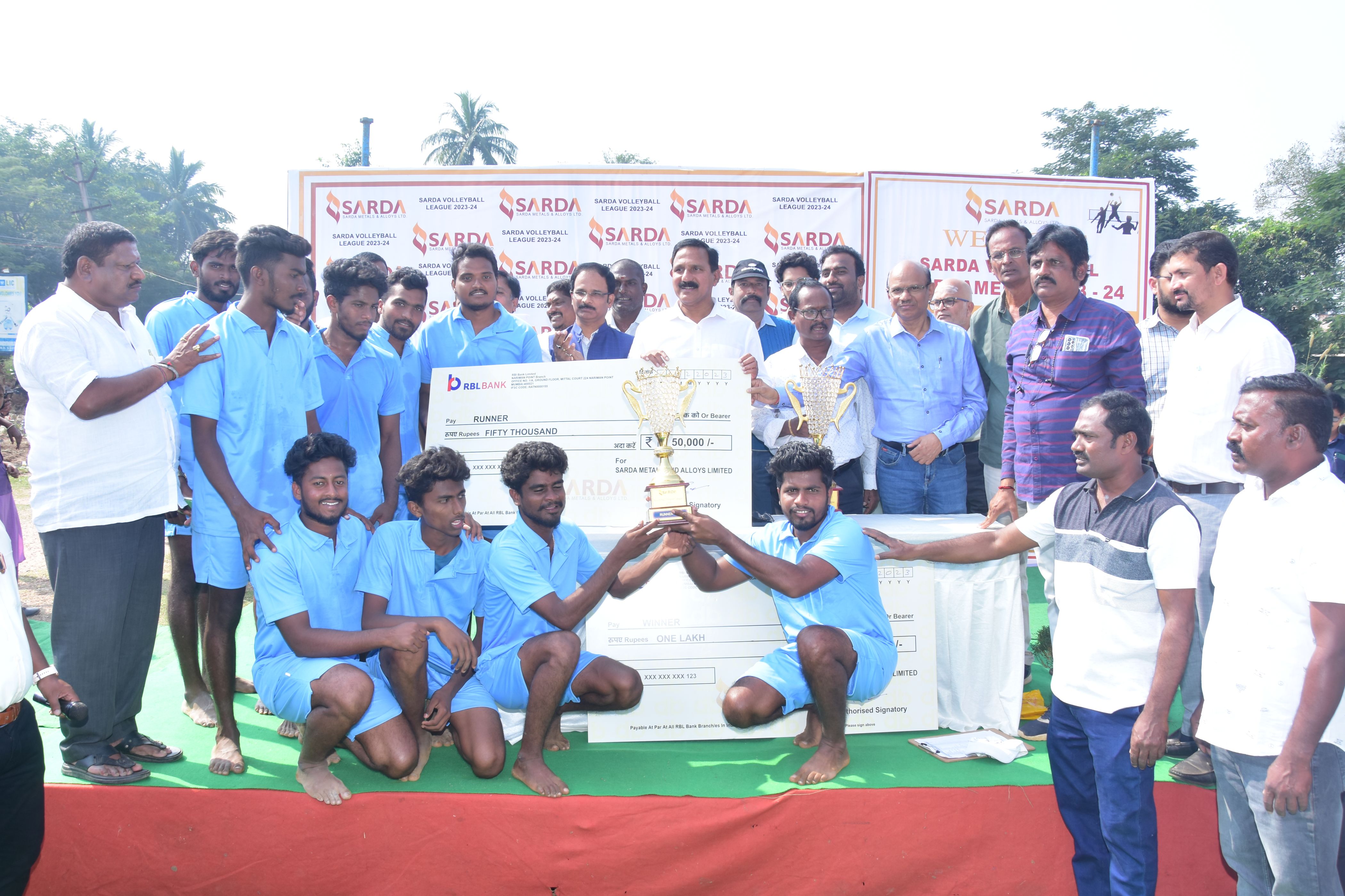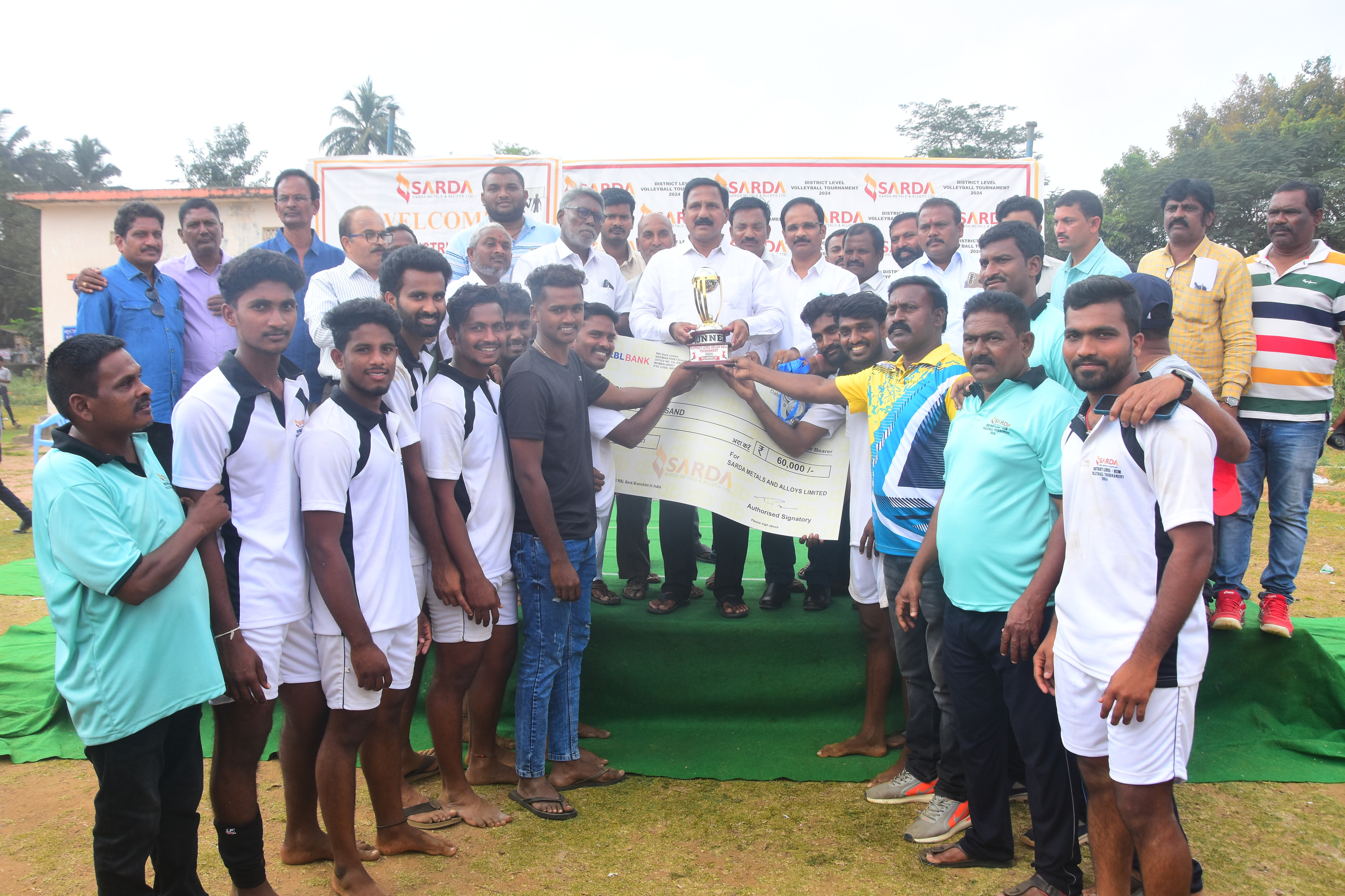 Sarda Metals & Alloys ltd has conducted Volleyball Tournament in Kothavala High School on Monday. total 34 teams participated in this tournament.Last match held between Gulivindada & Tummikapalli on wednesday And the title won by Gulivindada team. Company's DMD Neeraj Sarda issued a cheque of Rupees one lakh to winning team and gold medals & Fifty Thousand Rupees cheque to Runner up team and silver medals. Ardhaanapalem & Gollapalem teams stood at 3rd and 4th place received Ten thousand rupees cash price each.