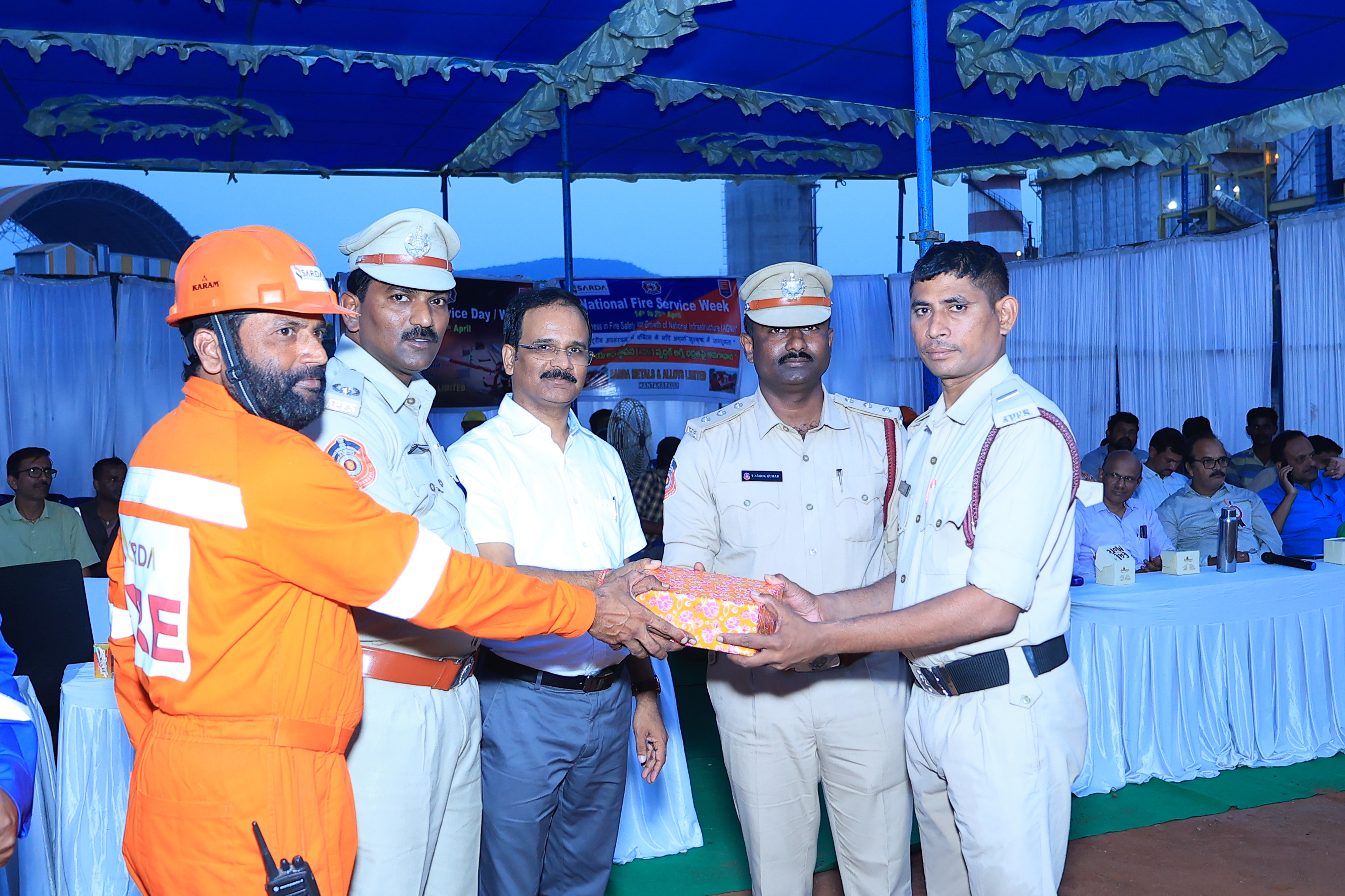 Sarda Metals & Alloys ltd. has conducted safety awareness week on the occation of national fire safety week. Organization has conducted a mock drill associating with district fire safety team to create awareness on employess on how to respond during fire accidents. Best performers were awareded. DFO K.Vinay participated in this event.