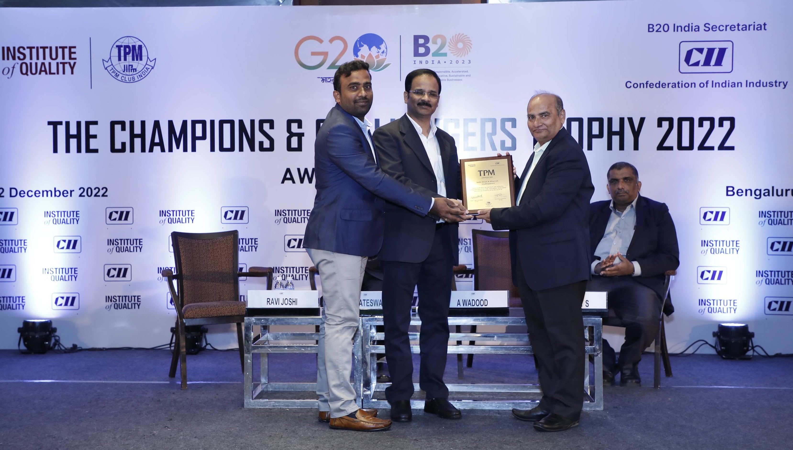 Sarda Metals and Alloys ltd has bagged "TPM Strong Commitment Award" for the journey towards manufacturing exellence at CII award ceremony 2022 held in bangalore on 22.12.2022. Company's HR Sr.GM Prabhat Mohan & TPM Sr.Manager T.Venu participated in the event.